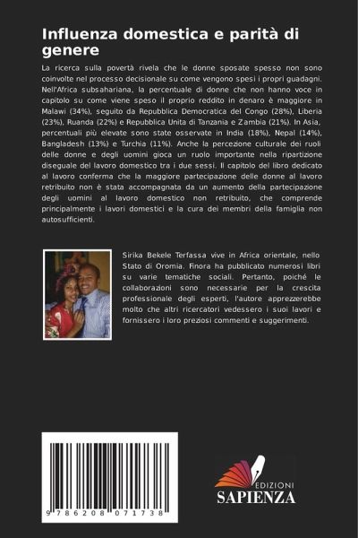 La ricerca sulla povertà rivela che le donne sposate spesso non sono coinvolte nel processo decisionale su come vengono spesi i propri guadagni. Nell'Africa subsahariana, la percentuale di donne che non hanno voce in capitolo su come viene speso il proprio reddito in denaro è maggiore in Malawi (34%), seguito da Repubblica Democratica del Congo (28%), Liberia (23%), Ruanda (22%) e Repubblica Unita di Tanzania e Zambia (21%). In Asia, percentuali più elevate sono state osservate in India (18%), Nepal (14%), Bangladesh (13%) e Turchia (11%). Anche la percezione culturale dei ruoli delle donne e degli uomini gioca un ruolo importante nella ripartizione diseguale del lavoro domestico tra i due sessi. Il capitolo del libro dedicato al lavoro conferma che la maggiore partecipazione delle donne al lavoro retribuito non è stata accompagnata da un aumento della partecipazione degli uomini al lavoro domestico non retribuito, che comprende principalmente i lavori domestici e la cura dei membri della famiglia non autosufficienti.