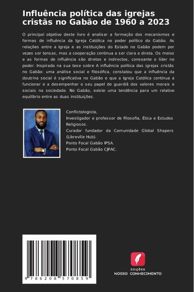 O principal objetivo deste livro é analisar a formação dos mecanismos e formas de influência da Igreja Católica no poder político do Gabão. As relações entre a Igreja e as instituições do Estado no Gabão podem por vezes ser tensas, mas a cooperação continua a ser clara e direta. Os meios e as formas de influência são diretos e indirectos, consoante o líder no poder. Inspirado na sua tese sobre A influência política das igrejas cristãs no Gabão: uma análise social e filosófica, constatou que a influência da doutrina social é significativa no Gabão e que a Igreja Católica continua a funcionar e a desempenhar o seu papel de guardiã dos valores morais e sociais na sociedade. No Gabão, existe uma tendência para um relativo equilíbrio entre as duas instituições.