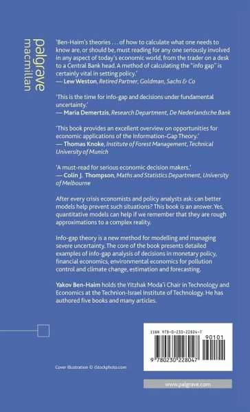 'Ben-Haim's 'theories and presentation of how to calculate what one NEEDS to know are, or should be, MUST reading for any one seriously involved in any aspect of today's economic world, from the trader on a desk to a Central Bank head. It is much too easy, given the stresses of todays world, to skip past missing information so as to act quickly in the market, but that is exactly the path which leads to significant errors, as we have all unfortunately witnessed. A method of calculating the 'info gap' is certainly vital in setting policy.' - Lew Weston, Retired Partner, Goldman, Sachs& Co