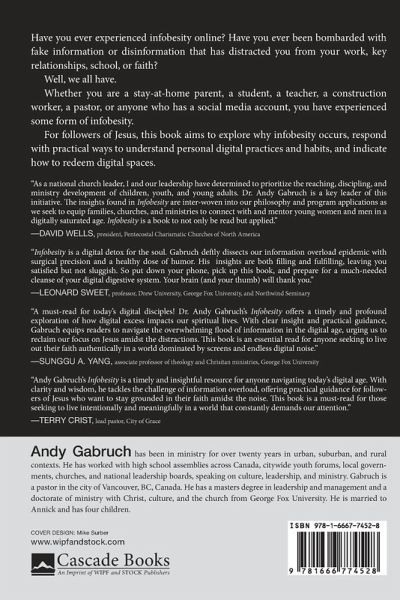 Have you ever experienced infobesity online? Have you ever been bombarded with fake information or disinformation that has distracted you from your work, key relationships, school, or faith? Well, we all have. Whether you are a stay-at-home parent, a student, a teacher, a construction worker, a pastor, or anyone who has a social media account, you have experienced some form of infobesity. For followers of Jesus, this book aims to explore why infobesity occurs, respond with practical ways to understand personal digital practices and habits, and indicate how to redeem digital spaces.