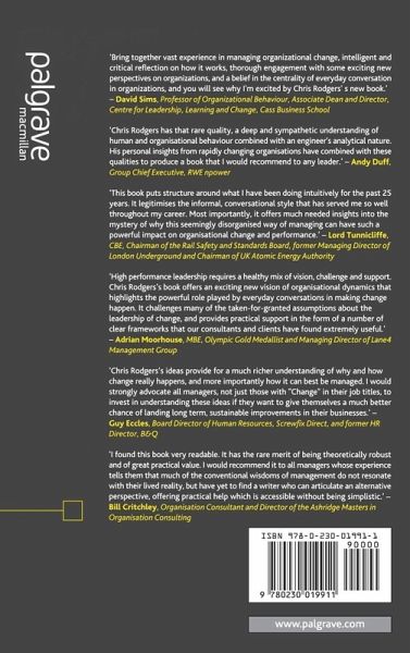 'Bring together vast experience in managing organizational change, intelligent and critical reflection on how it works, thorough engagement with some exciting new perspectives on organizations, and a belief in the centrality of everyday conversation in organizations, and you will see why I'm excited by Chris Rodgers' s new book.' - David Sims,, Professor of Organizational Behaviour, Associate Dean and Director, Centre for Leadership, Learning and Change, Cass Business School