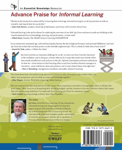Advance Praise for Informal Learning "The key to the twenty-first century will be in learning how to leverage informal learning for us all. Jay provides us with an evocative road map to how we can do this." --John Seely Brown, coauthor, Social Life of Information, and former chief scientist, Xerox Corp. "Informal learning is the perfect theme for exploring the next wave of our field. Jay Cross continues to push our thinking on the transformational forces of knowledge, learning, and performance. A must read!" --Elliott Masie, founder, The MASIE Center's Learning CONSORTIUM "In an outsourced, automated age, informal learning has become the key to high performance and personal fulfillment. And now Jay Cross has written the very best primer on this woefully neglected topic. This is a book for both sides of your brain!" --Daniel H. Pink, author, A Whole New Mind "Jay Cross provides an important challenge for us all--to move our focus from the classroom to the workplace, and in doing so, reframe what we do in ways that much more closely reflect how people actually learn and perform on the job. Informal Learning has profound implications for how we--from trainers to chief learning officers and from frontline business managers to executives--must rethink our ideas and practices, not in some distant future, but right now." --Marc J. Rosenberg, management consultant, and author, Beyond E-Learning "This book shows how informal learning experiences connect us with information, help us share ideas, and obtain new perspectives, and even help us create new knowledge together." --Ellen Wagner, director, Worldwide eLearning, Adobe Systems "The one sentence from this book that hit me like a train: 'Most corporations invest their training budget where it will have the least impact.' Wow. In an era of demanding ROI, shrinking budgets, and the insistence to do more with less, think of the impact that informal learning could have if it could truly focus learning and efforts for maximum impact." --Mark Oehlert, learning strategy architect, Booz Allen Hamilton