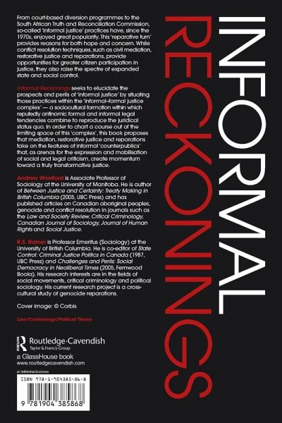 Part 1: Formal and Informal Justice: What is 'Formal' Justice? The Critique of 'Formal' Justice. The Reparational Turn: Emerging Visions of 'Informal' Justice. The Informal/Formal Justice Complex. Justice: The Grand Illusion? Part 2: Resolving Conflict in a Changing World: Understanding Transformations in the Juridical Field. Neoliberalism and Governmentality. Communicative and Instrumental Forms of Informal Justice. Changing Historical Contexts and Changing Justice Practices. The Quest for Redemption (Perpetrators and Victims) Part 3: Mediation as 'Informal Justice': What is Mediation? Its Origins and Position in the Juridical Field. Mediation Within the Field of Civil Conflict. The Strengths and Weaknesses of Mediated Settlements. Splits in Mediation Practice: The Fragmentation of the Mediation Field (e.g. Evaluative, Facilitative and Transformative Mediation). The Prospects for Mediation in the Informal/Formal Justice Complex Part 4: Restorative Justice as 'Informal' Justice: What is Restorative Justice? Its Origins, Intersections With Mediation and Position in the Juridical Field. Restoration Within the Field of Criminal Conflict. The Strengths and Weaknesses of Restoration. Splits in the Practice of Restoration: 'Communitarian' and 'Governmentalist' Restoration. The Prospects for Restorative Justice in the Informal/Formal Justice Complex Part 5: Reparations As Informal Justice: What Are Reparations? Their Origins, Intersections with Mediation and Restorative Justice and Position Within the Juridical Field. Reparations Within the Fields of National and International Conflict. The Strengths and Weaknesses of Reparations. Splits in the Field of Reparations: Reparations for Justice and Reparations for Certainty. The Prospects for Reparations in the Informal/Formal Justice Complex Part 6: Conclusions. Summary of Noted Tensions and Contradictions in the Juridical Field (Pertaining to Mediation, Restorative Justice and Reparations). Reconfiguring the Informal/Formal Complex. Towards 'Transformative Justice'