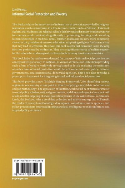 This book analyzes the importance of informal social protection provided by religious institutions such as madrassas in a low-income country such as Pakistan. This book explains that Madrassas are religious schools that have existed in many Muslim countries for centuries and contributed significantly to preserving, forming, and extending human knowledge in medieval times. Further, madrassas are now more commonly viewed as the providers of a narrow education, supporting religious fundamentalism, that may lead to terrorism. However, this book asserts that education is not the only function performed by madrassas. They are a significant source of welfare support for the vulnerable and marginalized households in many low-income countries.