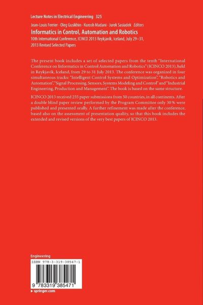 The present book includes a set of selected papers from the tenth "International Conference on Informatics in Control Automation and Robotics" (ICINCO 2013), held in Reykjavík, Iceland, from 29 to 31 July 2013. The conference was organized in four simultaneous tracks: "Intelligent Control Systems and Optimization", "Robotics and Automation", "Signal Processing, Sensors, Systems Modeling and Control" and "Industrial Engineering, Production and Management". The book is based on the same structure.