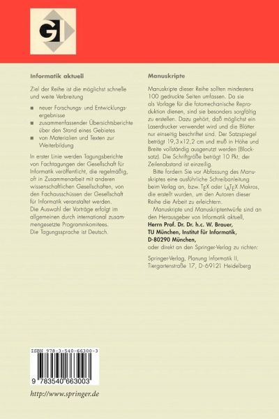Hauptvorträge.- Effiziente und effektive Informationsbeschaffung im Internet - wie soll man das unterrichten?.- Netztechnologien und Netzanwendungen - was bringt die Zukunft?.- Computernetze, Multimedia und virtuelle Realität: Perspektiven der Wissensgesellschaft.- Visualisierung, virtuelle Umgebungen und erweiterte Realität.- Lehr- und lernunterstützende Systeme I.- Anforderungen an lehrunterstützende Kooperationssysteme aus kommunikationstheoretischer Sicht.- Multimedia-gestützte Vorlesungen in einem interaktiven elektronischen Hörsaal - Ansätze und Erfahrungen.- Umgebungen für computerunterstütztes kooperatives Lernen in der Schule.- Lehr- und lernunterstützende Systeme II.- Programmieren und Beweisen: Experimente mit dem Programmverifizierer NPPV.- Animation der semantischen Analyse.- Konzepte zur Aus- und Fortbildung.- Informatische Bildung und Medienerziehung.- Ein (vorläufiges) Konzept für die informatische Grundbildung von Lehramtsstudierenden.- Ein Konzept zur Fortbildung von Fortbildnern - Oder: Endet Fortbildung in der Leere?.- Fachdidaktik I.- Dekonstruktion von Informatiksystemen als Unterrichtsmethode - Zugang zu objektorientierten Sichtweisen im Informatikunterricht.- Informatik als Pflichtfach an bayerischen Gymnasien.- Grundkonzepte der Informatik und ihre Umsetzung im Informatikunterricht.- Fachdidaktik II.- Objektorientiertes Programmieren in der Schulpraxis.- Landesschulversuch: Einjährige Berufsfachschule - Informatik - für Realschulabsolventen/-innen - Aspekte einer beruflich-informatischen Bildung.- Geheime Mitteilungen? - Ein Unterrichtsbeispiel zum Thema Kryptologie in einem Leistungskurs Informatik.