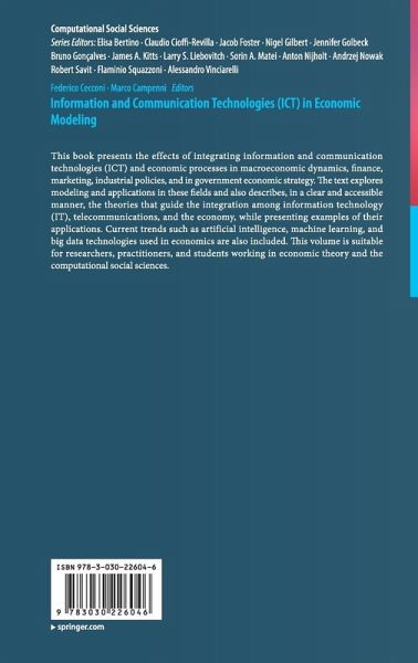 This book presents the effects of integrating information and communication technologies (ICT) and economic processes in macroeconomic dynamics, finance, marketing, industrial policies, and in government economic strategy. The text explores modeling and applications in these fields and also describes, in a clear and accessible manner, the theories that guide the integration among information technology (IT), telecommunications, and the economy, while presenting examples of their applications. Current trends such as artificial intelligence, machine learning, and big data technologies used in economics are also included. This volume is suitable for researchers, practitioners, and students working in economic theory and the computational social sciences.
