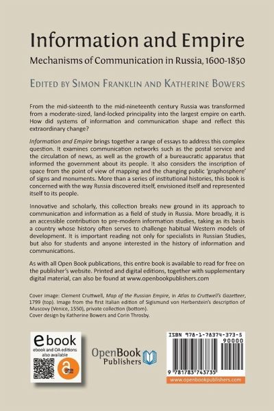 From the mid-sixteenth to the mid-nineteenth century Russia was transformed from a moderate-sized, land-locked principality into the largest empire on earth. How did systems of information and communication shape and reflect this extraordinary change? Information and Mechanisms of Communication in Russia, 1600-1850 brings together a range of contributions to shed some light on this complex question. Communication networks such as the postal service and the gathering and circulation of news are examined alongside the growth of a bureaucratic apparatus that informed the government about its country and its people. The inscription of space is considered from the point of view of mapping and the changing public 'graphosphere' of signs and monuments. More than a series of institutional histories, this book is concerned with the way Russia discovered itself, envisioned itself and represented itself to its people. Innovative and scholarly, this collection breaks new ground in its approach to communication and information as a field of study in Russia. More broadly, it is an accessible contribution to pre-modern information studies, taking as its basis a country whose history often serves to challenge habitual Western models of development. It is important reading not only for specialists in Russian Studies, but also for students and non-Russianists who are interested in the history of information and communications.
