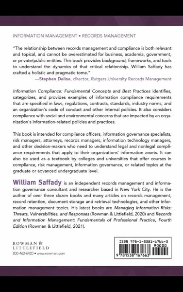 Compliance is one of the component of the widely discussed GRC (governance, risk, and compliance) framework, which integrates three key elements of organizational strategy, the other two being governance and risk. The GRC framework encompasses all aspects of organizational strategy and operations, including those that involve the creation, collection, retention, disclosure, ownership, and use of information by companies, government agencies, and non-profit entities. Information governance develops strategies, policies, and initiatives to maximize the value of an organization's information assets. Information risk management is responsible for identifying, analyzing, and controlling threats to those assets. Information compliance seeks to align an organization's information-related policies and practices with applicable requirements. Academic researchers, legal commentators, and management specialists have traditionally viewed compliance as a legal concern, but compliance is a multi-faceted concept. While adherence to legal and regulatory requirements is widely acknowledged as a critical component of compliance initiatives, it is not the only one. Taking a broader approach, this book identifies, categorizes, and provides examples of information compliance requirements that are specified in laws, regulations, contracts, standards, industry norms, and an organization's code of conduct and other internal policies. It also considers compliance with social and environmental concerns that are impacted by an organization's information-related policies and practices. The book is intended for compliance officers, information governance specialists, risk managers, attorneys, records managers, information technology managers, and other decision-makers who need to understand legal and non-legal compliance requirements that apply to their organizations' information assets. It can also be used as a textbook by colleges and universities that offer courses in compliance, risk management, information governance, or related topics at the graduate or advanced undergraduate level.