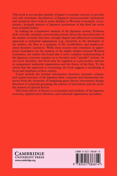 This book is not another parable of Japan's economic success; it provides rich and systematic descriptions of Japanese microeconomic institutions.