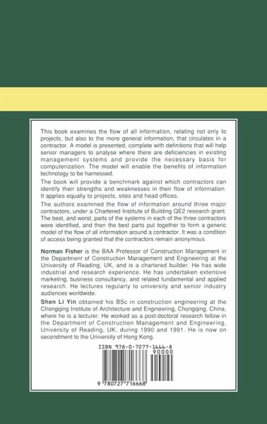 This book examines the flow of all information, relating not only to projects, but also to the more general information, that circulates in a contract. A model is presented, complete with definitions, that would help senior managers to analyze where there are deficiencies in existing management systems and provide the necessary basis for computerisation. The model will enable the benefits of information technology to be harnessed. This book will provide a benchmark against which contractors can identify their strengths and weaknesses in their flow of information.