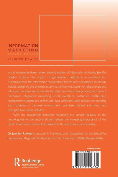 In this fully revised second edition of Information Marketing Jenny Rowley explores the impact of globalization, digitization, connectivity and customization in the information marketplace. She introduces a number of new topics and a shift of emphasis which reflect both the changing nature of information services and also practical and theoretical perspectives on marketing. This book's unique perspective makes it essential reading for professionals in information services as well as students in information management, library and information studies, business information, marketing, e-commerce and communication studies.