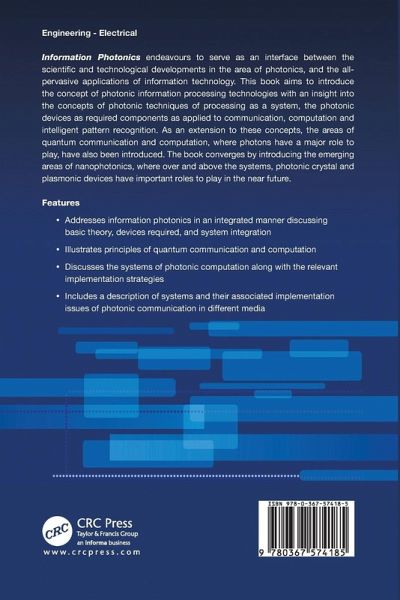 1. Information Communication. 2. Introduction to photonics. 3. Vision, visual perception and computer vision. 4. Photonic sources and detectors for information processing. 5. Photonic devices for modulation, storage and display. 6. Photonics in transform domain information processing. 7. Low level photonic information processing. 8. Photonics in networking and communication. 9. Photonic computing. 10. Photonic Pattern Recognition and Intelligent Processing. 11. Quantum information processing. 12. Nanophotonic information system. 13. Index.