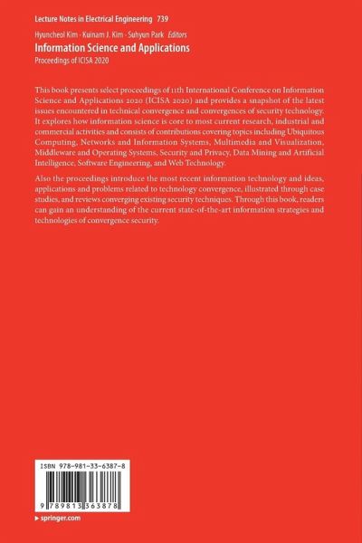 This book presents select proceedings of 11th International Conference on Information Science and Applications 2020 (ICISA 2020) and provides a snapshot of the latest issues encountered in technical convergence and convergences of security technology. It explores how information science is core to most current research, industrial and commercial activities and consists of contributions covering topics including Ubiquitous Computing, Networks and Information Systems, Multimedia and Visualization, Middleware and Operating Systems, Security and Privacy, Data Mining and Artificial Intelligence,…mehr