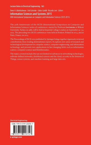 30th International Symposium on Computer and Information Sciences (ISCIS 2015) Herausgegeben:Abdelrahman, Omer H.; Gelenbe, Erol; Gorbil, Gokce; Lent, Ricardo