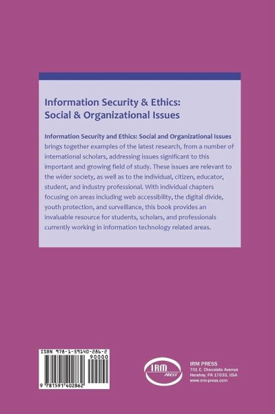 Information Security and Ethics: Social and Organizational Issues brings together examples of the latest research from a number of international scholars addressing a wide range of issues significant to this important and growing field of study. These issues are relevant to the wider society, as well as to the individual, citizen, educator, student and industry professional. With individual chapters focusing on areas including web accessibility; the digital divide; youth protection and surveillance; Information security; education; ethics in the Information professions and Internet voting; this book provides an invaluable resource for students, scholars and professionals currently working in information Technology related areas.