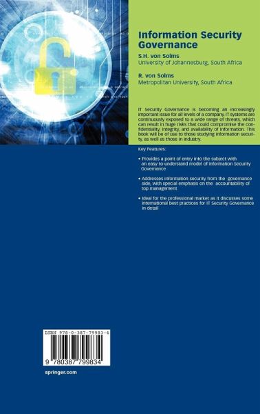 IT Security governance is becoming an increasingly important issue for all levels of a company. IT systems are continuously exposed to a wide range of threats, which can result in huge risks that threaten to compromise the confidentiality, integrity, and availability of information. This book will be of use to those studying information security, as well as those in industry.