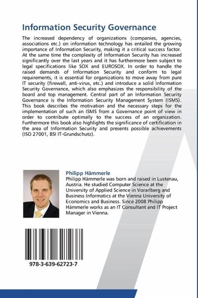 The increased dependency of organizations (companies, agencies, associations etc.) on information technology has entailed the growing importance of Information Security, making it a critical success factor. At the same time the complexity of Information Security has increased significantly over the last years and it has furthermore been subject to legal specifications like SOX and EUROSOX. In order to handle the raised demands of Information Security and conform to legal requirements, it is essential for organizations to move away from pure IT security (firewall, anti-virus, etc.) and introduce a solid Information Security Governance, which also emphasizes the responsibility of the board and top management. Central part of an Information Security Governance is the Information Security Management System (ISMS). This book describes the motivation and the necessary steps for the implementation of such an ISMS from a Governance point of view in order to contribute optimally to the success of an organization. Furthermore this book also highlights the significance of certification in the area of Information Security and presents possible achievements (ISO 27001, BSI IT-Grundschutz).