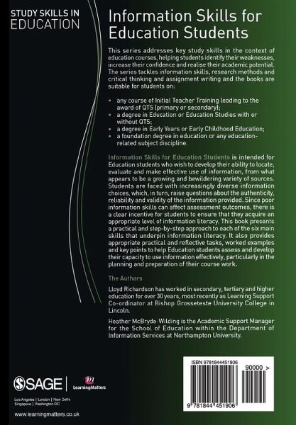This study guide will help education students to locate, evaluate and make effective use of information, from what appears to be a growing and bewildering variety of sources. Both in and out of university, students are faced with increasingly diverse information choices. This book presents a practical and step-by-step approach to each of the six main skills which underpin information literacy. It also provides appropriate practical and reflective tasks, worked examples and top tips to help education students assess and develop their capacity to use information effectively, particularly in the planning and preparation of their course work.