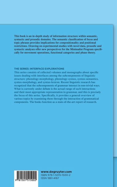 Building on the investigation of information structure within semantic, prosodic, syntactic perspectives, the book will appeal to researchers working on either of these domains or their interfaces.