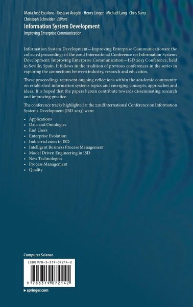 Information System Development-Improving Enterprise Communication are the collected proceedings of the 22nd International Conference on Information Systems Development: Improving Enterprise Communication-ISD 2013 Conference, held in Seville, Spain. It follows in the tradition of previous conferences in the series in exploring the connections between industry, research and education.