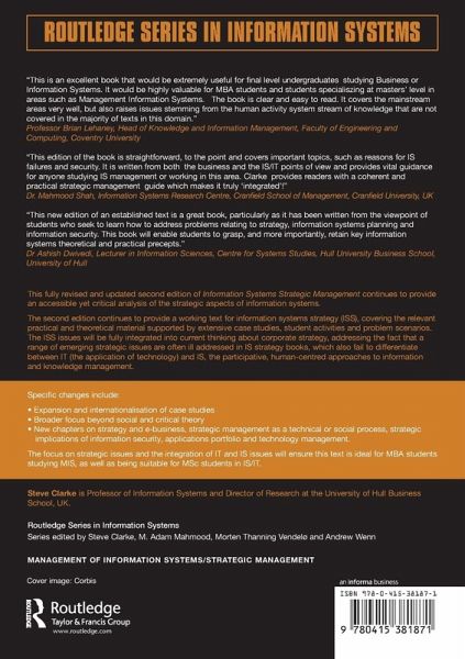 Fully revised and updated, this second edition of the very successful Information Systems Strategic Management continues to provide an accessible yet critical analysis of the strategic aspects of information systems.