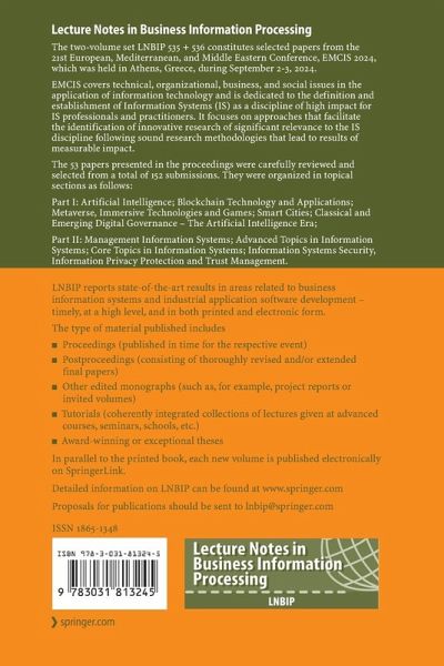 The two-volume set LNBIP 535 + 536 constitutes selected papers from the 21st European, Mediterranean, and Middle Eastern Conference, EMCIS 2024, which was held in Athens, Greece, during September 2-3, 2024.