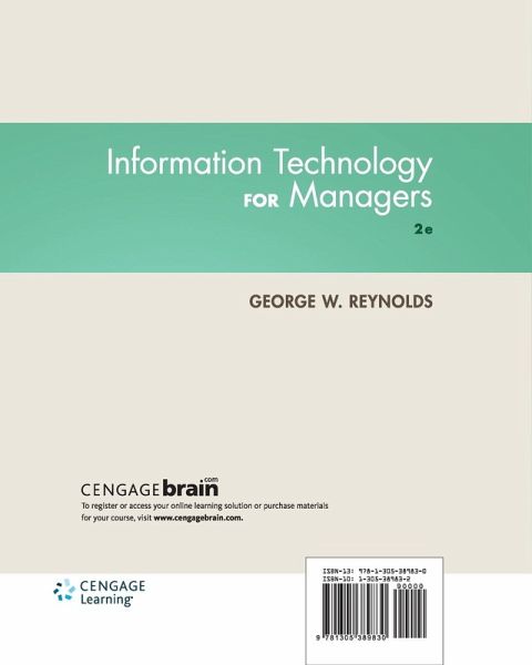 Give future managers the solid understanding they need to successfully oversee today's information systems with Reynold¿s INFORMATION TECHNOLOGY FOR MANAGERS, 2E. Written specifically for managers with little or no formal information technology training or expertise, this trusted text details the significant business implications of today¿s information technology. The author incorporates a wealth of actual, contemporary examples to clearly illustrate how managers can apply information technology to improve and strengthen their organizations. A new chapter on IT security, hands-on scenarios, as well as numerous text- and web-based cases provide opportunities for future managers to apply what they are learning. The book¿s logical framework helps managers understand the importance of their roles in guiding information technology and working effectively with all members of their organizations to achieve results.