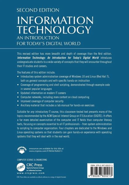 This revised edition has more breadth and depth of coverage than the first edition. Information Technology: An Introduction for Today's Digital World introduces undergraduate students to a wide variety of concepts that they will encounter throughout their IT studies and careers.