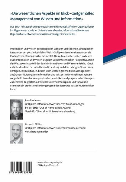 Information und Wissen gehören zu den wenigen verbliebenen, strategischen Ressourcen der post-industriellen Welt. Häufig werden diese Ressourcen als Produkte von IT-Infrastruktur betrachtet. Die Autoren untersuchen in diesem Buch Information und Wissen losgelöst von der technischen Perspektive. Denn der Wettbewerbsvorteil, der durch Informationen und Wissen entsteht, hängt entscheidend von der inhaltlichen Bedeutung und dem richtigen Einsatz zum richtigen Zeitpunkt ab. In diesem Buch werden ganzheitliche Managementansätze zur Nutzung von Information und Wissen im Unternehmenskontext vorgestellt, darunter viele praxisnahe Heuristiken und pragmatische Lösungen. Zudem wird dargestellt, ab welcher Unternehmensgröße und für welche Branchen ein professioneller Umgang mit der Ressource Wissen Nutzen stiften kann.