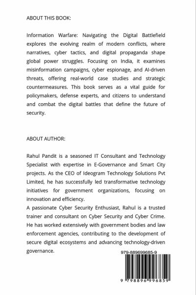 Information Warfare: Navigating the Digital Battlefield delves into the evolving landscape of modern conflicts, where battles are no longer fought solely with weapons but through narratives, cyber strategies, and digital propaganda. This book explores the sophisticated tactics of misinformation, cyber espionage, and psychological operations used by adversarial forces to manipulate public perception and destabilize nations. With a special focus on India, it examines real-world case studies, emerging threats, and the role of artificial intelligence in shaping global conflicts. Offering insights into countermeasures, policy recommendations, and the need for a robust national strategy, this book serves as a crucial guide for policymakers, defense strategists, cybersecurity professionals, and every citizen who wishes to understand and combat the invisible war being waged in the digital realm.