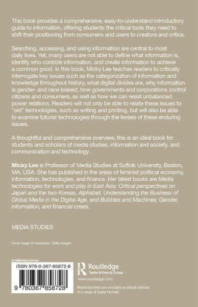 Searching, accessing, and using information are central to most daily lives. Yet, many users are not able to define what information is, identify who controls information, and create information to achieve a common good. In this book, Micky Lee teaches readers to critically interrogate key issues such as the categorization of information and knowledge throughout history, what digital divides are, why information is gender and race biased, how governments and corporations control citizens and consumers, as well as how we can resist unbalanced power relations. Readers will not only be able to relate these issues to "old" technologies, such as writing and printing, but will also be able to examine futurist technologies through the lenses of these enduring issues.