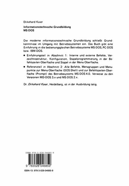 Software-Tools ermoglichen es dem Benutzer, Probleme am PC in bedienungsfreundlicher Umgebung zu losen. Ziihlt man die Programmiersprachen zu den Software-Tools, ergeben sich zum Beispiel folgende Bereiche: - Betriebssystem (z. B. MS-DOS, OS/2 bzw. PS/2) - Maschinennahe Programmentwicklung (z. B. 8086-Assembler) - Strukturierte Programmentwicklung (z. B. Basic, C, Pascal) - Datenbanksystem (z. B. dBASE, SQL) - Tabel1enkalkulation (z. B. Multiplan, Excel) - Textverarbeitung (z. B. Word, WordStar) - Integrierte Software (z. B. Framework, Lotus 1-2-3, Works) - Computer Assisted Design, CAD - Desktop Publishing, DTP - Steuerung und Regelung Die moderne informationstechnische Grundbildung schlie~t Grundkenntnisse in der Anwendung ausgewiihlter Software-Tools ein. MS-DOS: 1m vorliegenden Buch wird eine Einftihrung in den Umgang mit den bedienungs gleichen Betriebssystemen MS-DOS, PC-DOS bzw. IBM-DOS gegeben. Das Buch gliedert sich in einen EinfUhrungs- und einen Referenzteil. - EinfUhrungsteil: Interne und externe Befehle, Verzeichnisbefehle, Stapelprogrammie rung in der Befehlszeilen-Oberfliiche und in der Menti-Oberfliiche. - Referenzteil: Siimtliche Befehle, Mentigruppen und Mentipunkte zum Betrlebssystem MS-DOS 4.0 mit Verweisen zu den Versionen MS-DOS 2.x und MS-DOS 3.x.