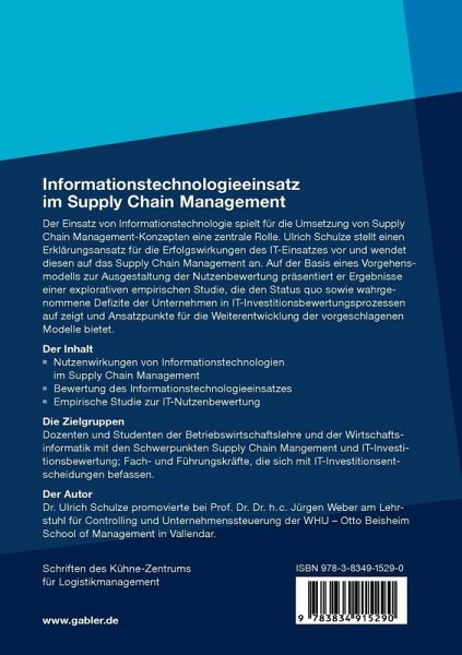 Der Einsatz von Informationstechnologie spielt für die Umsetzung von Supply Chain Management-Konzepten eine zentrale Rolle. Ulrich Schulze stellt einen Erklärungsansatz für die Erfolgswirkungen des IT-Einsatzes vor und wendet diesen auf das Supply Chain Management an. Auf der Basis eines Vorgehensmodells zur Ausgestaltung der Nutzenbewertung präsentiert er Ergebnisse einer explorativen empirischen Studie, die den Status quo sowie wahrgenommene Defizite der Unternehmen in IT-Investitionsbewertungsprozessen auf zeigt und Ansatzpunkte für die Weiterentwicklung der vorgeschlagenen Modelle bietet.