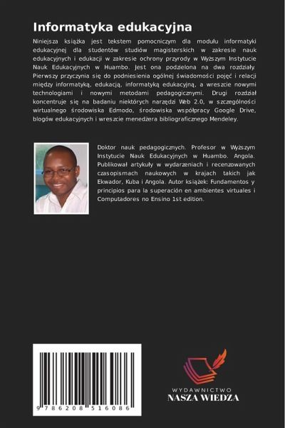 Niniejsza ksi¿¿ka jest tekstem pomocniczym dla modu¿u informatyki edukacyjnej dla studentów studiów magisterskich w zakresie nauk edukacyjnych i edukacji w zakresie ochrony przyrody w Wy¿szym Instytucie Nauk Edukacyjnych w Huambo. Jest ona podzielona na dwa rozdziäy. Pierwszy przyczynia si¿ do podniesienia ogólnej ¿wiadomo¿ci poj¿¿ i relacji mi¿dzy informatyk¿, edukacj¿, informatyk¿ edukacyjn¿, a wreszcie nowymi technologiami i nowymi metodami pedagogicznymi. Drugi rozdziä koncentruje si¿ na badaniu niektórych narz¿dzi Web 2.0, w szczególno¿ci wirtualnego ¿rodowiska Edmodo, ¿rodowiska wspó¿pracy Google Drive, blogów edukacyjnych i wreszcie mened¿era bibliograficznego Mendeley.