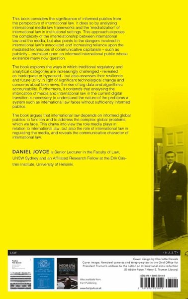 This book considers the significance of informed publics from the perspective of international law. It does so by analysing international media law frameworks and the 'mediatization' of international law in institutional settings. This approach exposes the complexity of the interrelationship between international law and the media, but also points to the dangers involved in international law's associated and increasing reliance upon the mediated techniques of communicative capitalism - such as publicity - premised upon an informed international public whose existence many now question. The book explores the ways in which traditional regulatory and analytical categories are increasingly challenged - revealed as inadequate or bypassed - but also assesses their resilience and future utility in light of significant technological change and concerns about fake news, the rise of big data and algorithmic accountability. Furthermore, it contends that analysing the imbrication of media and international law in the current digital transition is necessary to understand the nature of the problems a system such as international law faces without sufficiently informed publics. The book argues that international law depends on informed global publics to function and to address the complex global problems which we face. This draws into view the role media plays in relation to international law, but also the role of international law in regulating the media, and reveals the communicative character of international law.
