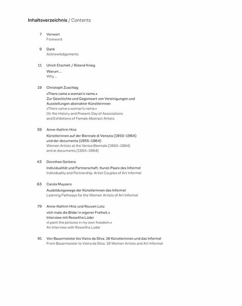 Die informelle Kunst entwickelte sich vom Beginn der 1950er- bis zu den frühen 1960er-Jahren zu der vorherrschenden Kunstrichtung in Europa. Der kunsthistorische Blick auf diese von klassischen Form- und Gestaltungsprinzipien losgelöste Kunstrichtung fokussierte sich bislang meist auf ihre männlichen Vertreter. Der Band wirft nun einen neuen Blick auf die Kunst des Informel und würdigt hochkarätige Positionen von 16 Künstlerinnen. Neben bekannten Namen wie Maria Lassnig, Brigitte Meier-Denninghoff, Judit Reigl und Maria Helena Vieira da Silva werden lang vergessene Künstlerinnen wiederentdeckt. Anhand von kunstsoziologischen Fragen zu Netzwerken, Ausstellungsbeteiligungen und zur Rezeption wird zudem den Mechanismen des Kunstbetriebs nachgespürt.