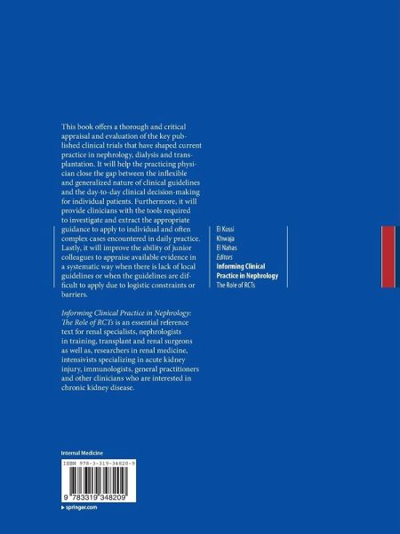 This book offers a thorough and critical appraisal and evaluation of the key published clinical trials that have shaped current practice in nephrology, dialysis and transplantation. It will help the practicing physician close the gap between the inflexible and generalized nature of clinical guidelines and the day-to-day clinical decision-making for individual patients. It will provide the clinician with the tools required to investigate and extract the appropriate guidance to apply to individual cases in daily practice. Moreover, it will help improve the ability of junior colleagues to appraise available evidence in a systematic way when there is lack of local guidelines or when the guidelines are difficult to apply due to logistic constraints or barriers. Lastly, this book will serve as a reference for key clinical trials in different areas of renal medicine together with literature and authors views of these trials and their impact on changing practice.