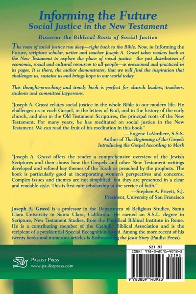 The roots of social justice run deep-right back to the Bible. Now, in Informing the Future, scripture scholar, writer and teacher Joseph Grassi takes readers back to the New Testament to explore the place of social justice-the just distribution of economic, social and cultural resources to all people-as envisioned and practiced in it. It is there, the author demonstrates, that we will find the inspiration that challenges us, sustains us and brings hope to our world today.