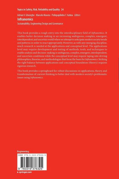 This book provides a rough entry into the interdisciplinary field of Infranomics. It enables better decision making in an increasing ambiguous, complex, emergent, interdependent, and uncertain world where we attempt to anticipate modern society trends and patterns in order to react appropriately. However, as with any emerging discipline, much research is needed at the applications and conceptual level. The applications level may require development and testing of methods, tools, and techniques to enable analysis and decision-making in ambiguous, complex, emergent, interdependent, and uncertain conditions while the conceptual level may require taping into driving philosophies, theories, and methodologies that form the basis for Infranomics. Striking the right balance between applications and conceptual foundation (theory) requires rigorous research.