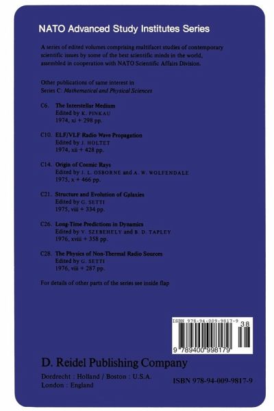 This volume contains a series of lectures presented at the 4th Course of the International School of Astrophysics, held in Erice (Sicily) from July 9 - July 20, 1977 at the "E. Majorana" Centre for Scientific Culture. The course was fully supported by a grant from the NATO Advanced Study Institute Programme. It was attended by 82 participants from 15 countries. Even though the infrared portion of the electromagnetic spectrum covers an extensive interval from the red region of the optical spectrum (10,000 A) to the microwave radio region (1 mm), its role in astronomy has been minimal until the last two decades. Until very recently, the only objects observed were the sun, the moon and the planets. A primary reason for this late development was the lack of sensitive detectors and the necessary cryogenic technology that must accompany their use. Recent progress in this technology has been paralleled by an ever increasing interest of astronomers in infrared observations, leading to a number of ex tremely important results in different branches of astronomy. This becomes evident when one realizes that in many astrophysical conditions most of the energy is found to be channeled into the infrared portion of the electromagnetic spectrum. Stars were detected that yield most of their radiation in the infrared; these objects present a new view of stellar evolution, both in the birth and death stages.