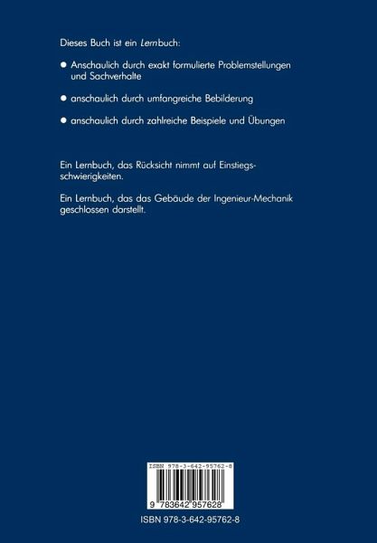 Der Inhalt (Statik Kinematik Kinetik Elastizitäts- und Festigkeitslehre) deckt den Bereich der Ingenieurmechanik ab, der den heutigen Fragestellungen und Anforderungen der Ingenieurpraxis entspricht. In diesem Lernbuch werden Übungen durchgerechnet; Formeln und Lehrsätze werden in Bezug gebracht zu den konkreten Problemen in der Praxis des Ingenieurs. Die einzelnen Abschnitte in Verbindung mit den Mechanik-Aufgaben Band 1, 2 und 3 sind so aufgebaut, daß sie jeweils einzeln gelesen, erarbeitet und verstanden werden können. Wiederholungen sollen den Lernerfolg fördern.