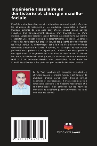 L'ingénierie des tissus buccaux et cranio-faciaux aura un impact profond sur les stratégies de traitement et les modalités chirurgicales à l'avenir. Plusieurs patients de tous âges sont affectés chaque année par les séquelles d'un développement aberrant, d'un traumatisme ou d'une maladie. L'ingénierie tissulaire est un domaine interdisciplinaire qui cherche à apporter une solution unique à la perte/déficience de tissus. Le concept consistant à faire appel aux propres cellules des patients pour reconstruire les tissus perdus ou endommagés est à la base de plusieurs nouvelles techniques d'ingénierie tissulaire. À l'avenir, les stratégies de réadaptation passeront de la prothèse à la régénération. Ce texte traite de la portée et des applications de l'ingénierie tissulaire dans le domaine de la chirurgie buccale et maxillo-faciale, ainsi que de son utilité en dentisterie clinique. Il réfléchit à la nécessité d'établir des partenariats étroits entre les scientifiques cliniques et les praticiens pour révolutionner notre domaine.