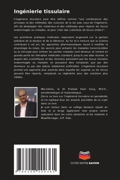L'ingénierie tissulaire peut être définie comme "une combinaison des principes et des méthodes des sciences de la vie avec ceux de l'ingénierie, afin de développer des matériaux et des méthodes pour réparer les tissus endommagés ou malades, et pour créer des substituts de tissus entiers".Les premières pratiques médicales reposaient largement sur la gestion palliative de la douleur et de la détresse. Au fur et à mesure que la science contribuait à cet art, les approches pharmaceutiques visant à modifier la physiologie du corps, les vaccins pour prévenir les maladies transmissibles ou la chirurgie pour enlever les parties malades sont devenus et restent en grande partie les thérapies médicales standard. Jusqu'à une date récente, la plupart des scientifiques et des cliniciens pensaient que les tissus humains endommagés ou malades ne pouvaient être remplacés que par des donneurs ou par des pièces totalement artificielles. L'ingénierie tissulaire promet une approche plus avancée dans laquelle les organes ou les tissus peuvent être réparés, remplacés ou régénérés pour des solutions plus ciblées.