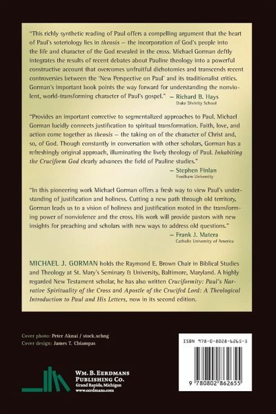 In this groundbreaking study of Paul's soteriology, Michael Gorman builds on his influentialCruciformity: Paul's Narrative Spirituality of the Cross to argue that cruciformity is, at its heart,theoformity -- what the Christian tradition has called theosis or participation in the life of God. "A richly synthetic reading of Paul. . . . Gorman deftly integrates the results of recent debates about Pauline theology into a powerful constructive account that overcomes unfruitful dichotomies and transcends recent controversies between the 'New Perspective on Paul' and its traditionalist critics. Gorman's important book points the way forward for understanding the nonviolent, world-transforming character of Paul's gospel." -- Richard B. Hays, Duke Divinity School
