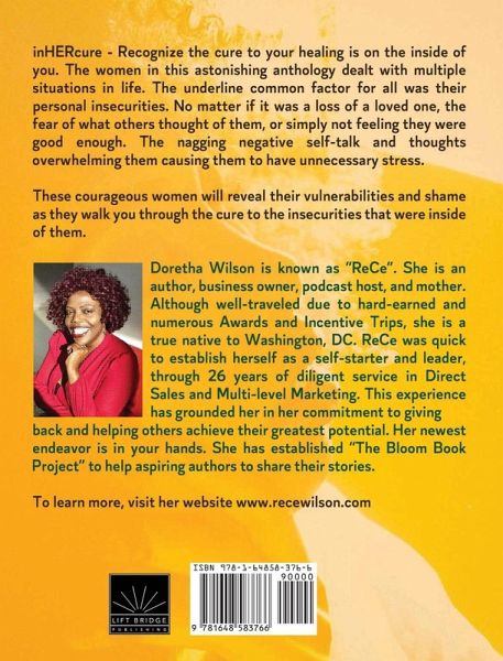 InHERcure - Recognize the cure to your healing is on the inside of you. The women in this astonishing anthology dealt with multiple situations in life. The underline common factor for all was their personal insecurities. No matter if it was a loss of a loved one, the fear of what others thought of them, or simply not feeling they were good enough. The nagging negative self-talk and thoughts overwhelming them causing them to have unnecessary stress. These courageous women will reveal their vulnerabilities and shame as they walk you through the cure to the insecurities that were inside of them. Written by Keianna Johnson, Jereese Johnson, Veronica Patterson, Lisa Edwards, Lynn Willett, Takhkina Sellers, and Jimmie' M. Morgan