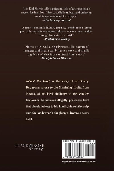"Joe Edd Morris tells a poignant tale of a young man's search for identity... This beautifully-upbeat and enduring novel is recommended for all ages." -The Library Journal In Land Where My Fathers Died, the first book of the Shelby Amateur Sleuth Series, twenty-four-year-old Jo Shelby Ferguson, just out of prison for a crime he didn't commit, embarks on an adventurous pilgrimage to Mexico in a successful search for the roots of his confederado kin, the only family he has remaining. Inherit the Land is the story of Jo Shelby Ferguson's return from Mexico to the Mississippi Delta and of his reunion with his childhood sweetheart, Athen, the daughter of the landowner Jo Shelby believes illegally possesses land that belongs to his family. Athen learns of his designs, which includes returning part of the land to the Negroes farming it. Sparks fly. She leaves him. Her two nefarious brothers abduct him and leave him in the middle of the night-bound, gagged and hooded in a cotton field. Miraculously, Jo Shelby frees himself. With the aid of an aged attorney, and after considerable legal mining of ancient county land documents, the attorney discovers a cloud on the land title dating back to 1885 when the property was lost in a crap game ... while the old colonel Calvin T. Ferguson, owner of the land, was still alive in Mexico. A dramatic, emotional court battle ensues. The plantation blacks, also aware of Jo Shelby's ultimate plans, fill the courtroom. Athen strides in with her family. With the aid of his aging sidekick, Jo Shelby serves as his own attorney. A climactic pivotal moment occurs when he faces Athen on the witness stand and discovers she is on his side. Months later, the judge rules that a "material fact was possibly concealed when the deed changed hands." There was a cloud on the title. Jo Shelby has sixty days to find the original will. In the final scene, he is on a bus returning to Mexico to find the will. Unexpectedly, when the bus stops at Indianoloa, Athen, boards the bus: "I thought it might prove interesting, us headed in the same direction for once. Besides, I couldn't let you go traipsing off to Mexico where some señorita might grab you." She is unaware of Jo Shelby's Mexican girlfriend. Look for book three, The Will, and more adventure.