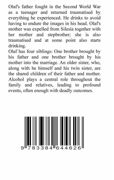 Olaf's father fought in the Second World War as a teenager and returned traumatised by everything he experienced. He drinks to avoid having to endure the images in his head. Olaf's mother was expelled from Silesia together with her mother and stepbrother; she is also traumatised and at some point also starts drinking.Olaf has four siblings: One brother brought by his father and one brother brought by his mother into the marriage. An older sister, who, along with he himself and his twin sister, are the shared children of their father and mother. Alcohol plays a central role throughout the family and relatives, leading to profound events, often enough with deadly outcomes.