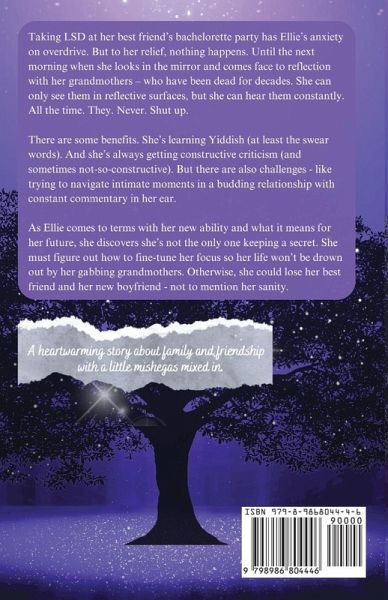 Taking LSD at her best friend's bachelorette party has Ellie's anxiety on overdrive. But to her relief, nothing happens. Until the next morning when she looks in the mirror and comes face to reflection with her grandmothers - who have been dead for decades. She can only see them in reflective surfaces, but she can hear them constantly. All the time. They. Never. Shut up. There are some benefits. She's learning Yiddish (at least the swear words). And she's always getting constructive criticism (and sometimes not-so-constructive). But there are also challanges - like trying to navigate intimate moments in a budding relationship with constant commentary in her ear. As Ellie comes to terms with her new ability and what it means for her future, she discovers she's not the only one keeping a secret. She must figure out how to fine-tune her focus so her life won't be drown out by her gabbing grandmothers. Otherwise, she could lose her best friend and her new boyfriend - not to mention her sanity.