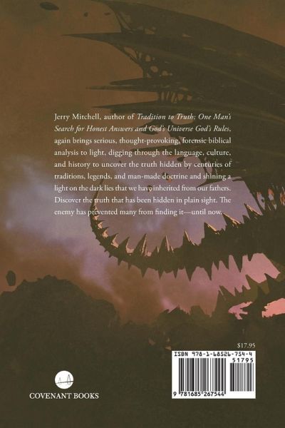 Jerry Mitchell, author of Tradition to Truth: One Man's Search for Honest Answers and God's Universe God's Rules, again brings serious, thought-provoking, forensic biblical analysis to light, digging through the language, culture, and history to uncover the truth hidden by centuries of traditions, legends, and man-made doctrine and shining a light on the dark lies that we have inherited from our fathers. Discover the truth that has been hidden in plain sight. The enemy has prevented many from finding it--until now.